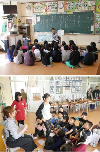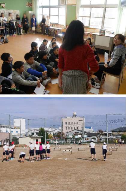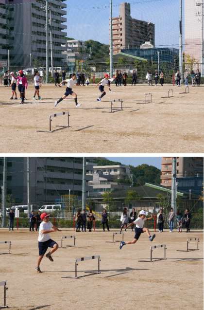 6年生の授業参観は、国語「物語をつくろ」で作った物語を発表していました。運動場では体育でハードル走の授業をしていました。