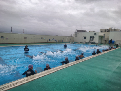 水慣れのあと、平泳ぎの足の動きを練習しました。