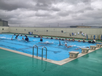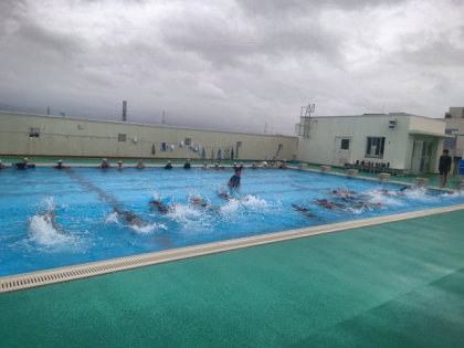 朝から降っていた雨も、かなり小降りになってきたので、プールに入りました。
