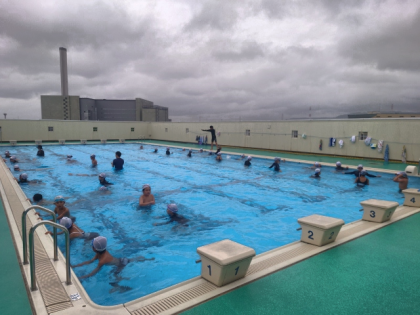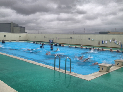 朝から降っていた雨も、かなり小降りになってきたので、プールに入りました。
