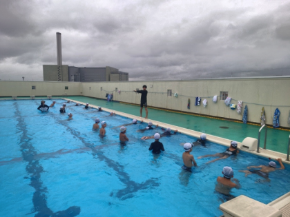 水慣れのあと、平泳ぎの足の動きを練習しました。