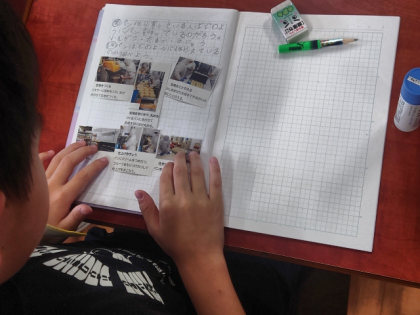 社会科の時間は、パンができるまでにはどのような仕事があるのか調べ、パン作りをしている人たちの思いや願いについて考えました。