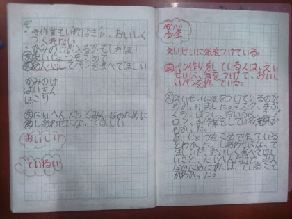 子どもたちは機械で作られているだけでなく、手作業でも作られ、おいしく安全で安心して食べられるようにという思いでパンを作っていることに気付いていました。