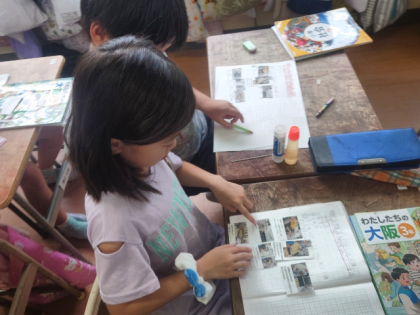 たくさんのパンをどのようにして作っているのか予想し、資料をもとにパン作りの工程を調べていきました。
