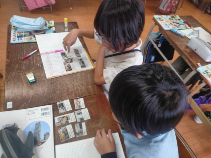 社会科の時間は、パンができるまでにはどのような仕事があるのか調べ、パン作りをしている人たちの思いや願いについて考えました。