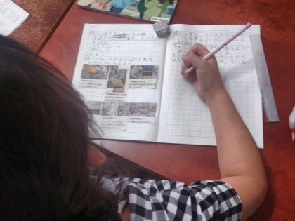社会科の時間は、パンができるまでにはどのような仕事があるのか調べ、パン作りをしている人たちの思いや願いについて考えました。