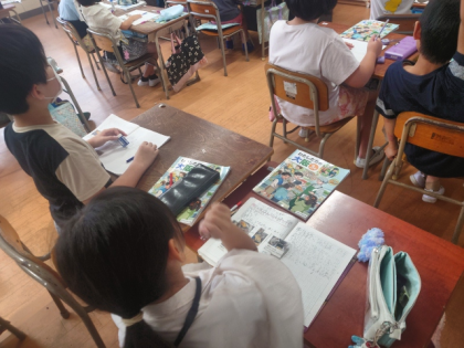 たくさんのパンをどのようにして作っているのか予想し、資料をもとにパン作りの工程を調べていきました。