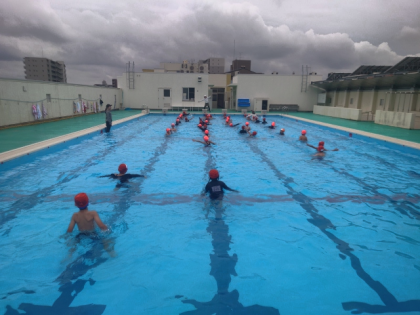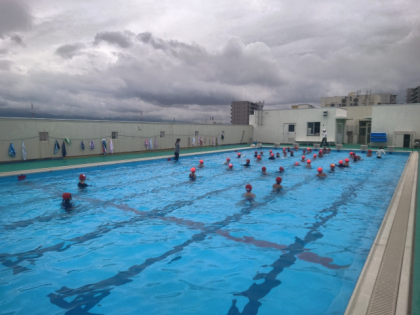 雨のためしばらくプール学習ができませんでしたが、朝からの雨もやみ、ようやくプールに入ることができました。