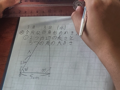 算数科の時間は、合同な四角形の描き方を考えました。