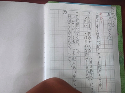 今日は、2場面の「なぜクルルは飛べなくなったのか」という課題について、読み取っていきました。
