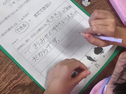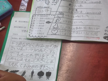 そして、自分の野菜が収穫できるのか、なぜそう思うのかをカードに書いてまとめました。