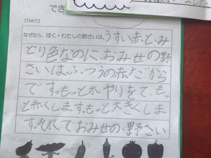 そして、自分の野菜が収穫できるのか、なぜそう思うのかをカードに書いてまとめました。
