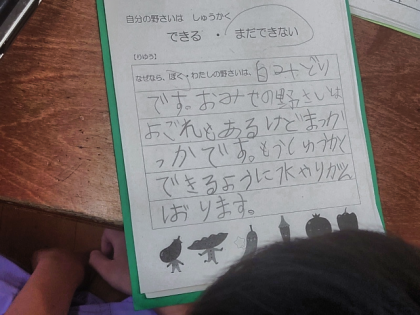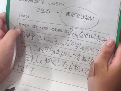 そして、自分の野菜が収穫できるのか、なぜそう思うのかをカードに書いてまとめました。