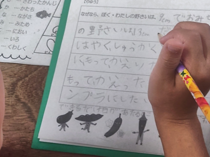 「いつ収穫できるのかなあ」「早く食べたいなあ」という気持ちで愛情たっぷりに自分の野菜を見つめていました。
