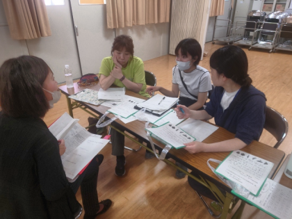 2年生の生活科「野さいをしゅうかくしよう」の授業をもとに、より効果的に指導するためにはどのような工夫ができるのか教員全員で話し合い、討議を深めました。
