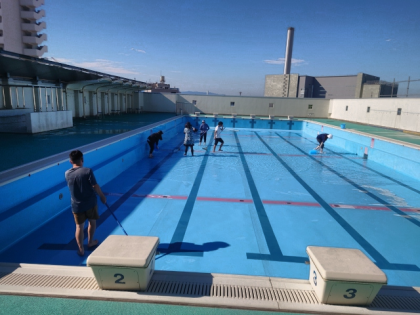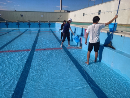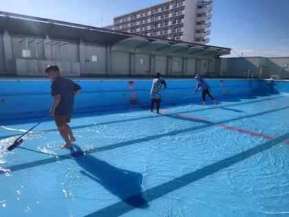 放課後、担当の教職員でプールの換水清掃を行いました。