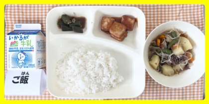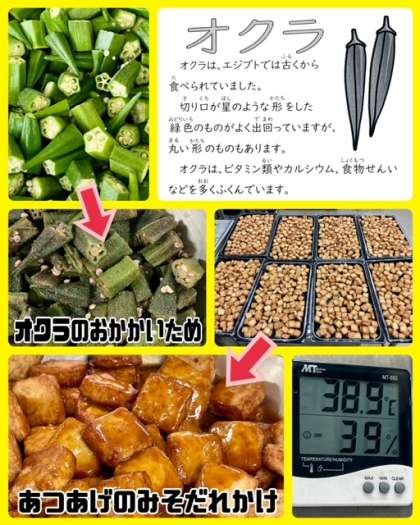 今日の献立は、肉じゃが・あつあげのみそだれかけ・オクラのおかかいため・ごはん・牛乳でした。
