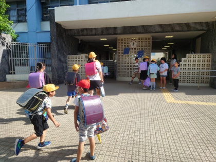 運営委員の子どもたちがあいさつ運動をがんばっています。
