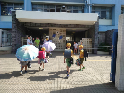 運営委員の子どもたちがあいさつ運動をがんばっています。