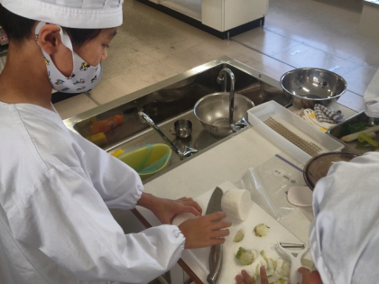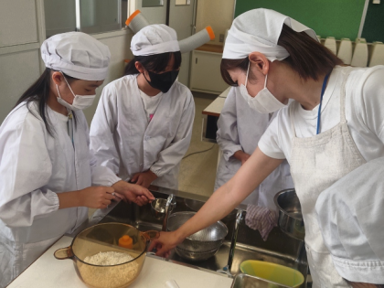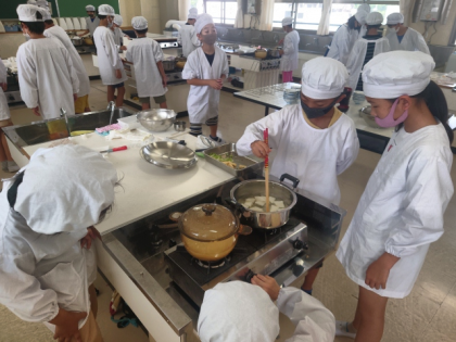 家庭科の時間は、ごはんとみそ汁の調理実習をしました。