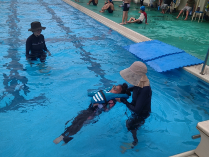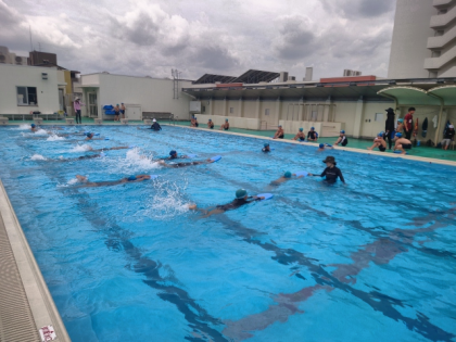 今日は、水慣れの後、けのびやばた足でプールの横方向を往復するなどの練習をしました。