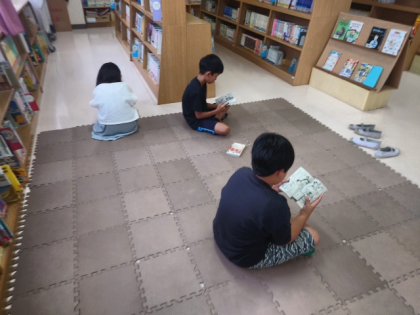 20分休みに、子どもたちが図書室で本を読んでいます。
