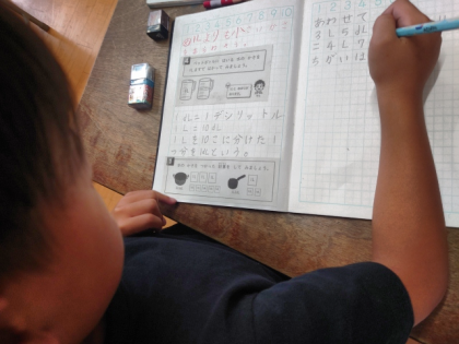 算数科の時間は、「かさの計算」の学習をしました。