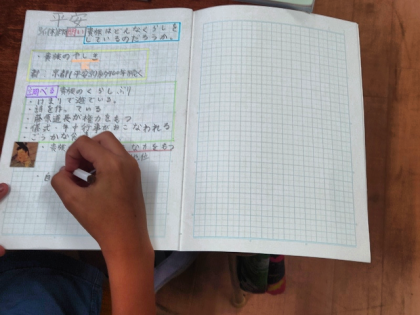 社会科の時間は、平安時代の貴族のすまいや儀式・年中行事などのくらしぶりについて調べ、今のくらしと比べてどのように思うかについて話し合いました。