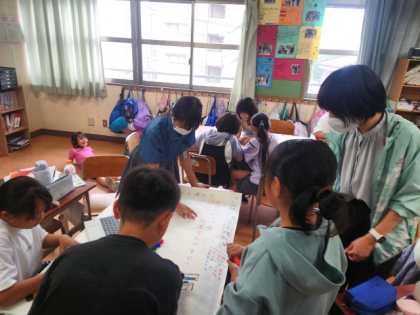 社会科の時間は、先日訪れたごみ焼却工場を見学してわかったことをグループで壁新聞にまとめました。