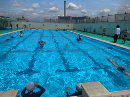 水慣れのあと、クロールや平泳ぎの練習をしました。