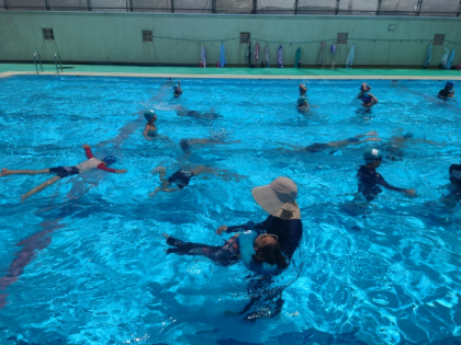 今日は、水慣れの後、けのびやばた足の練習をしました。