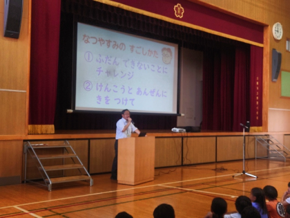 「(校長講話続き)・・・いよいよ明日からは夏休みが始まります。