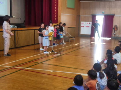 最後に、3・4年の各学級の代表が、「1学期がんばったこと」を発表しました。