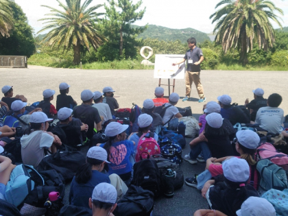 スタッフの方から、宿舎でのすごし方のルールやマナーについて説明を受けています。