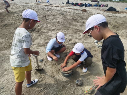 砂浜遊びをしています。