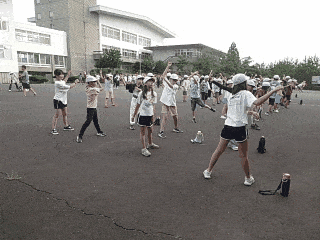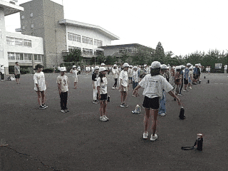 今日利用している各団体が一同に集まり、朝のあいさつをしたり、ラジオ体操をしたりしました。