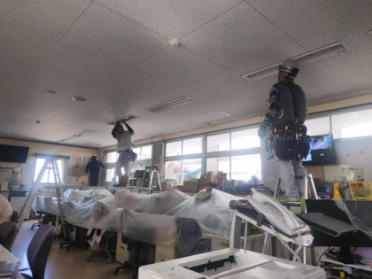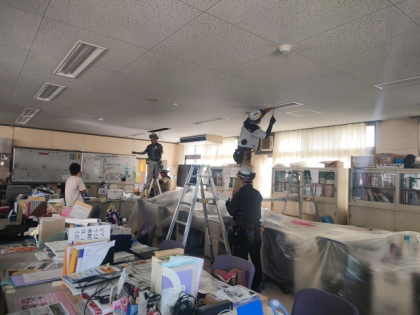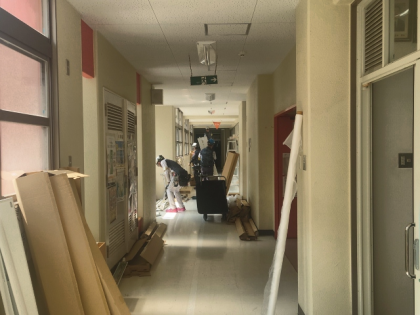 今日は、職員室や2階の教室、廊下などの工事が行われました。