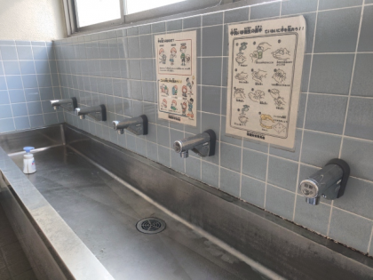 校舎内の手洗い場の蛇口が自動水栓になりました。