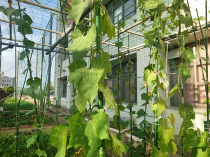 学習園のヘチマやサツマイモ、稲たちも元気ですよ。