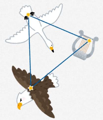 まず、「夏の大三角」と呼ばれる3つの一等星と、その一等星が含まれる星座について調べましょう。