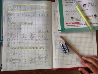 80÷20の計算の仕方を考えよう(4年生) 〜8月27日〜