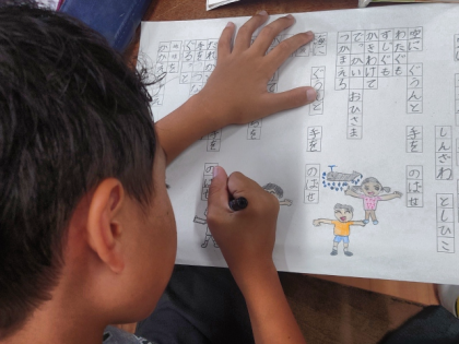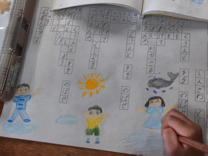 視写が終わったら、あいたところに詩のようすに合った絵を考えて描きました。