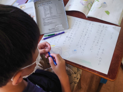 視写の字も、詩のようすを表した絵も、きれいにかくことができましたね。