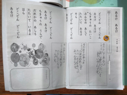 国語科の時間は、教科書の詩「あるけ あるけ」の学習をしています。