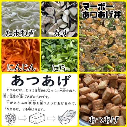 「マーボーあつあげ丼」は、あつあげを使用してボリュームを出し、気温が高い季節に食がすすむよう香辛料をきかせた丼です。