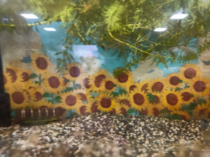 玄関のメダカ水槽のバックスクリーンがひまわりバージョンになりました。