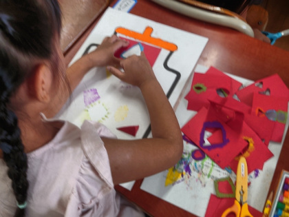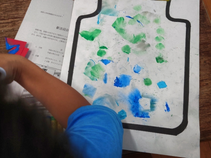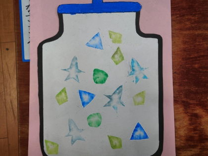 図工科の時間は、画用紙のびんの中に、パスをつかっておいしそうなキャンディーをたくさん描いていきました。