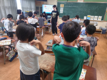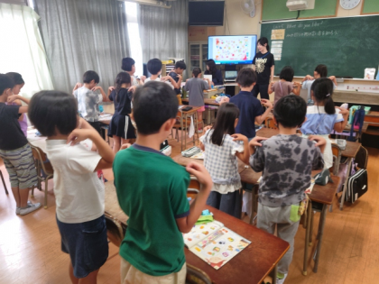 英語活動の時間は、教科書のイラストを見ながら、身のまわりの物の、英語の表現について学習しました。