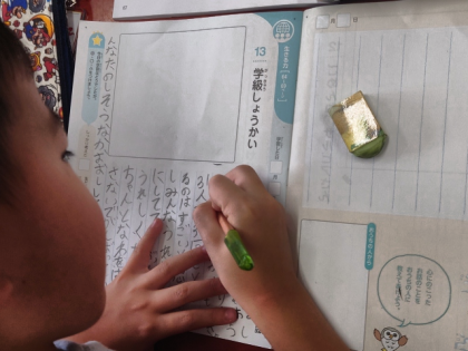道徳の時間は、教材文「学級しょうかい」を学習しました。
