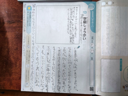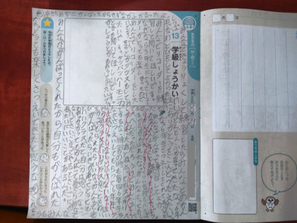 道徳の時間は、教材文「学級しょうかい」を学習しました。